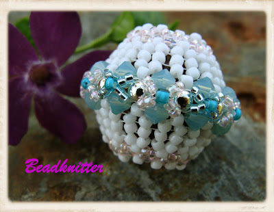 I started with Right Angle Weave, then did some Ndebele, and finished up with some peyote. I embellished with netting. A nice satisfying project.