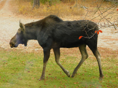 It's been a long time since I've been able to get a picture of a moose. There haven't been as many hanging around lately, and if I do see one, it's usually down the hill on the outside of the fence. This one here showed up in the front yard.